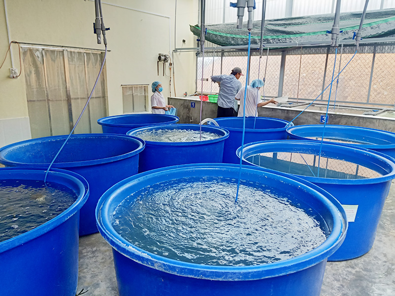 Nước biển được khử trùng bằng ống UV, được lọc qua một số bộ lọc để diệt khuẩn. Sau đó đặt rong nho vào thùng chứa đặc biệt để rong nho phát triển.